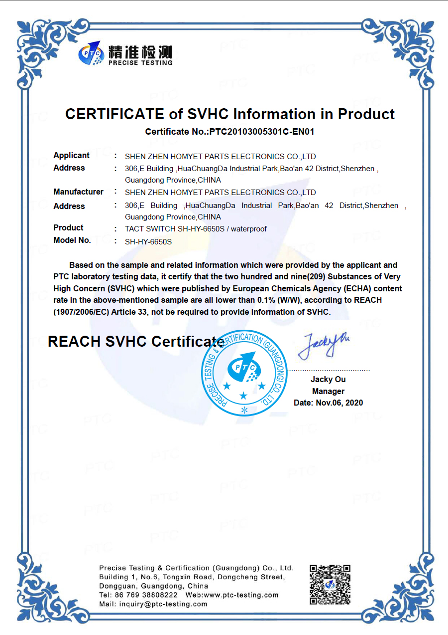 Afin de s'adapter aux exigences du marché, nous nous efforçons continuellement d'innovation et d'expansion du marché, ce qui nous permet de développer avec succès une série de nouveaux produits et de les introduire sur le marché. Nos produits principaux incluent des commutateurs de tact, des prises de téléphone, des commutateurs à bascule, des prises de puissance, des cartes, et des connecteurs. Nos produits sont largement utilisés dans la mode numérique, les communications, le multimédia, la maison numérique et d'autres domaines connexes. Notre société a un système parfait de gestion de la qualité et un personnel professionnel et technique expérimenté.